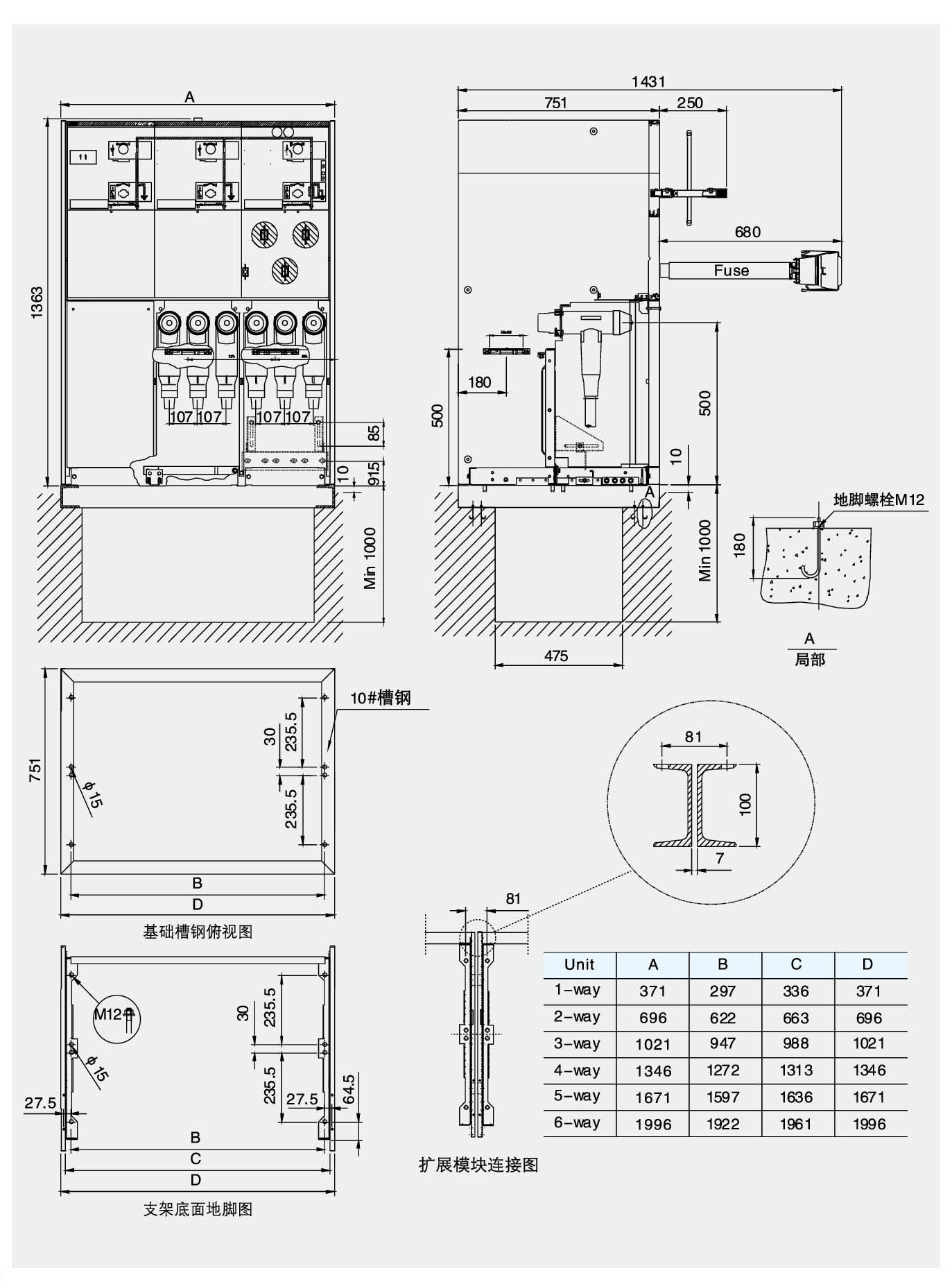 The SRM6-12 series inflatable switchgear is mounted on a galvanized sheet frame, and the switch unit is in an SF6 air box made of corrosion-resistant and non-magnetic 3mm thick stainless steel. The SF6 air box is a "sealed pressure system" that can operate for 20 years under normal operating conditions. The normal working pressure of SF6 gas is ···
