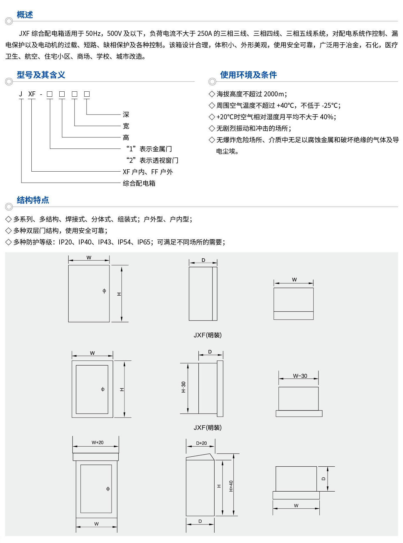 JXF integrated distribution box is suitable for three-phase three-wire, three-phase four-wire, three-phase five-wire system with 50Hz, 500V and below, load current not more than 250A, for control of power distribution system, leakage protection and motor overload, short circuit, Phase loss protection and various controls. The box has reasonable ···