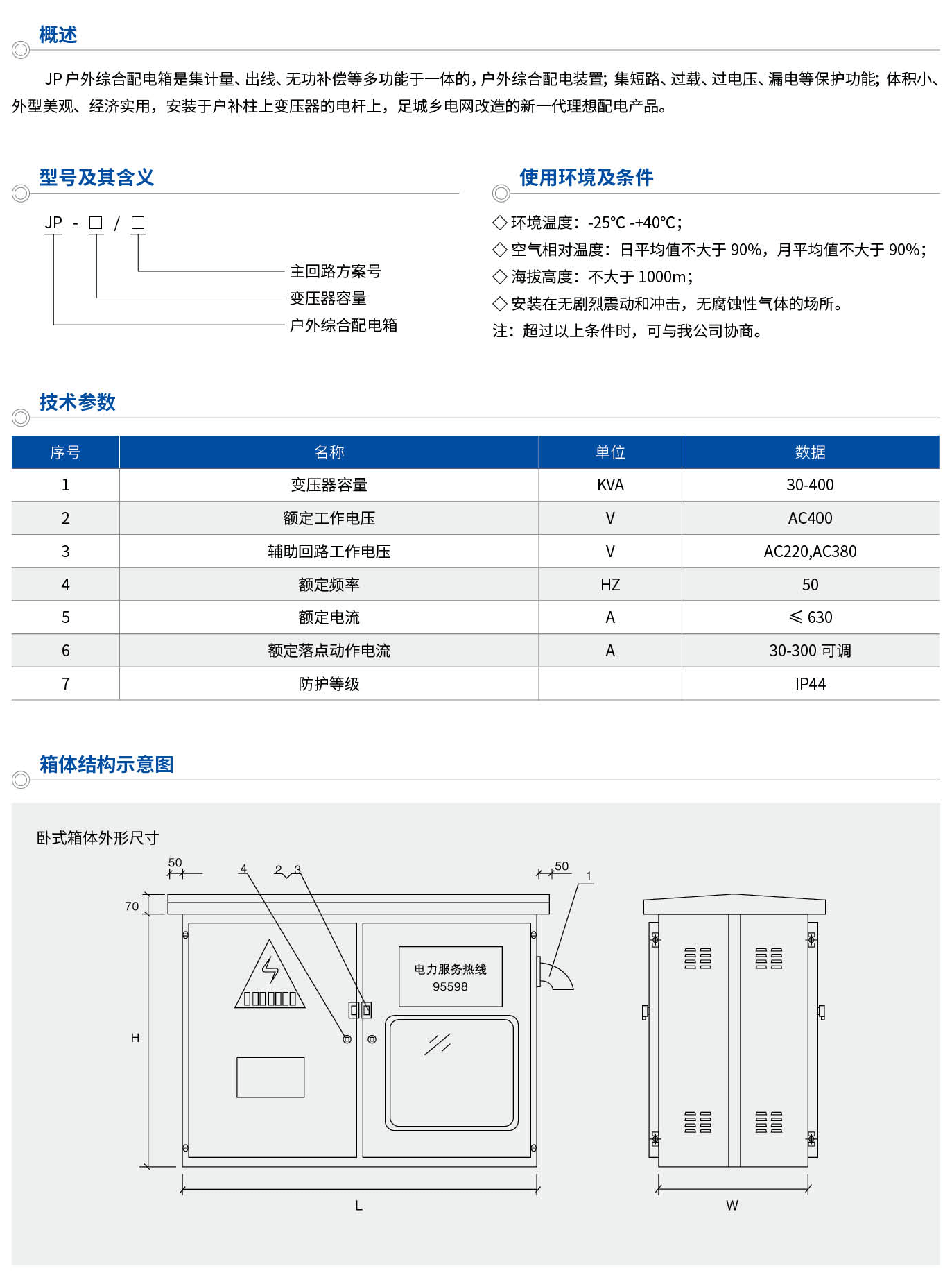 JP outdoor integrated distribution box is an outdoor integrated distribution device that integrates metering, outgoing, reactive power compensation, etc. , Installed on the pole of the transformer on the household supplementary column, a new generation of ideal power distribution products for urban and rural power grid transformation.